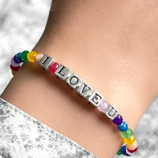 I love U Gemstone Stretch Bracelet
