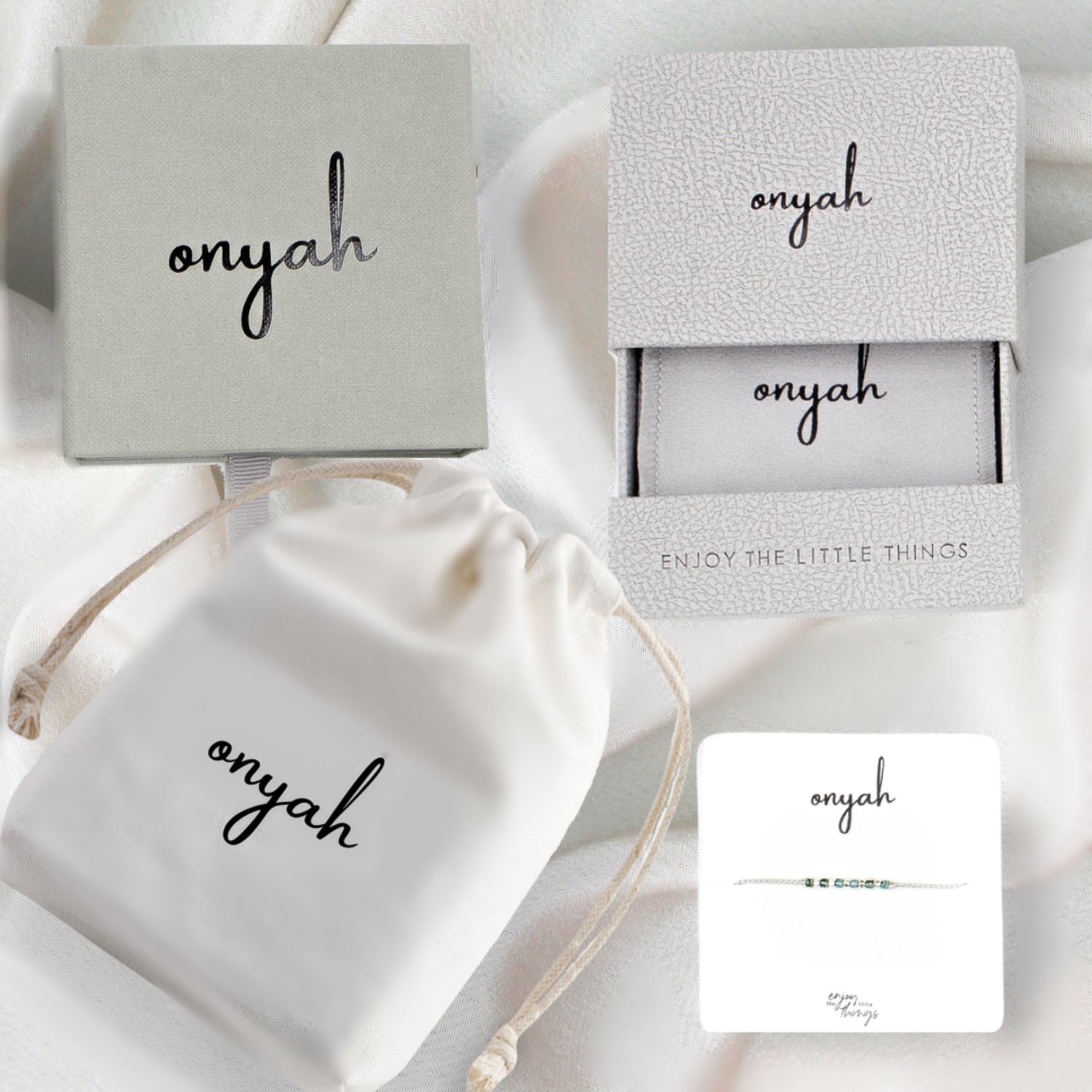 Every onyah purchase will arrive in a gift box, pouch for storage. A premium service to make all your jewelry giftable.